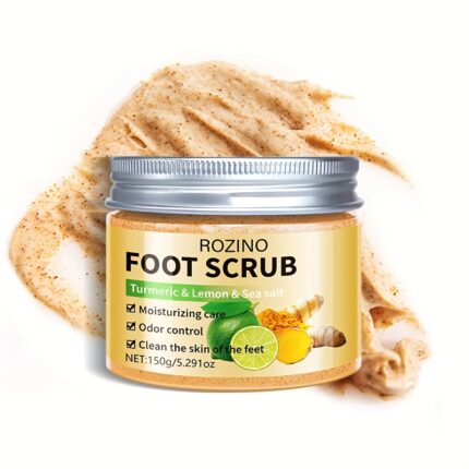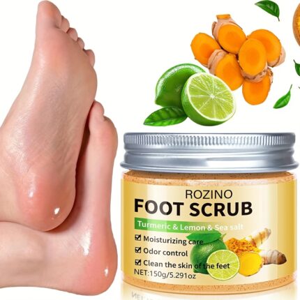 ROZINO Turmeric & Lemon Foot Scrub – 150g Moisturizing Exfoliator for Soft, Smooth Feet, Hypoallergenic, Odor-Controlled, Deep Cleansing for Dry Light Beige, All Light Beige Types, Natural Ingredient Design | Sea Salt Exfoliant, Foot Light Beige Remover