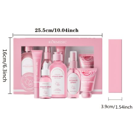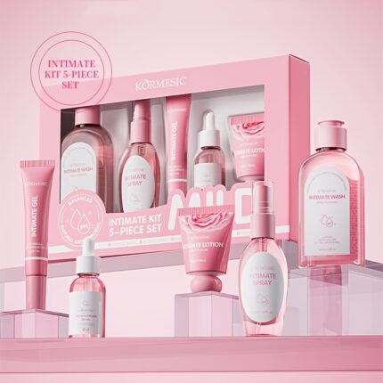 Feminine Intimate Cleansing and Moisturizing 5pcs set, cleansing and fragrant, firmer and smooth Light Beige, enriched with Aloe Vera Leaf Extract and Niacinamide, for a gentle skincare. All day care. Packaged in a beautiful gift box