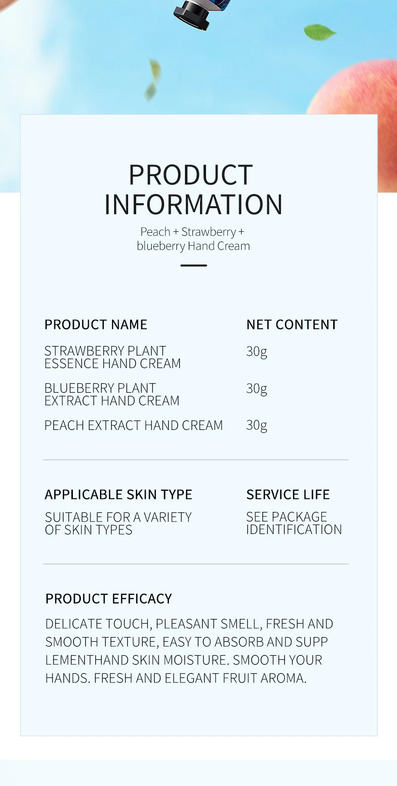 Be the first to review “1pc Fruit Plant Extract Fragrance Hand Cream Set Moisturizing Repair Anti Dry Hand Lotion Sets Hands Skin Care Products Chap” Cancel reply