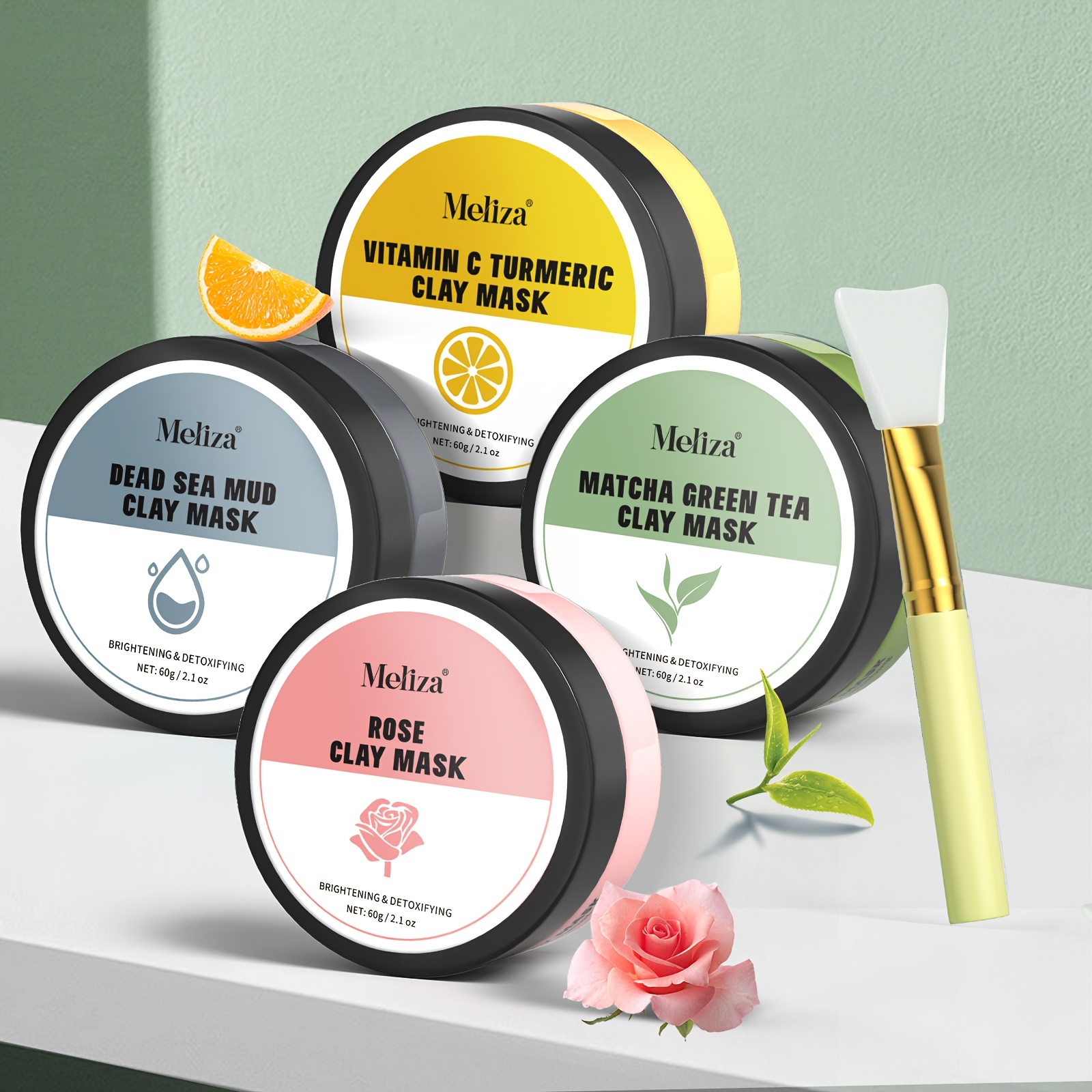 4pcs Clay Mask Set, Turmeric Vitamin C Clay Mask, Green Tea, Dead Sea Clay Mask, Rose Clay Mask, Deep Cleaning Mother’S Day Gift Box, Perfect Gift for Friends, Mothers, Family