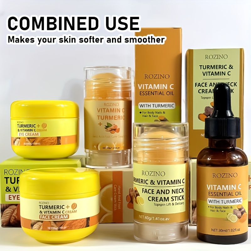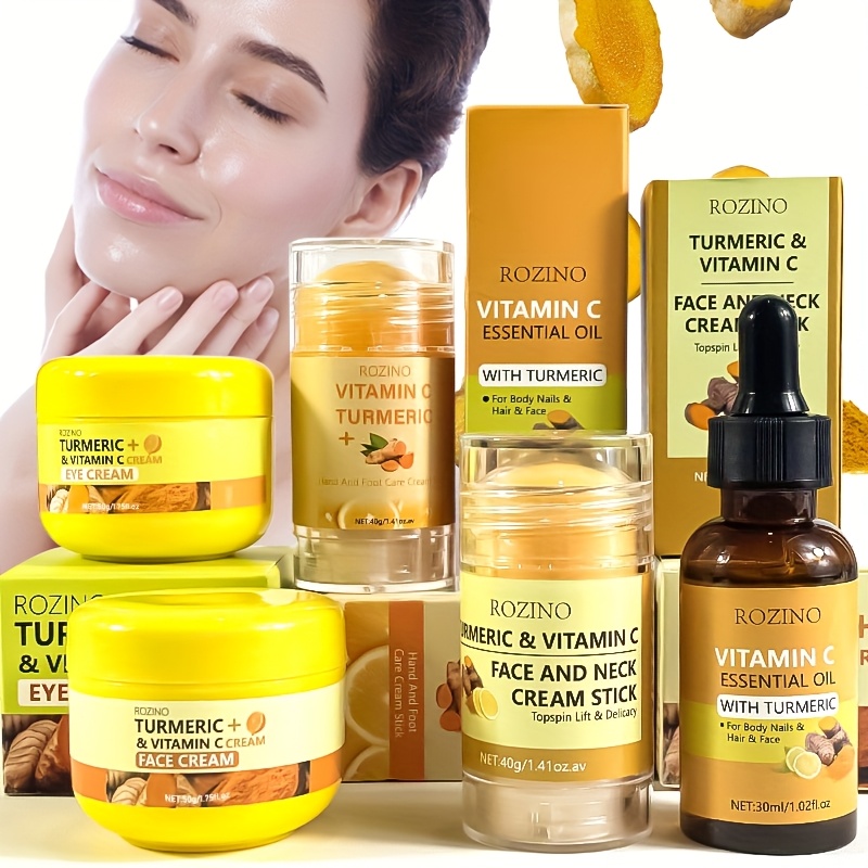 5pcs Turmeric Vitamin C Facial and Hand Foot Care Set, Hydrating Moisturizing Cream with Fine Texture, Instant Hydration, Brightening, Plumping Light Beige, Softens, Smooths, and Balances Light Beige