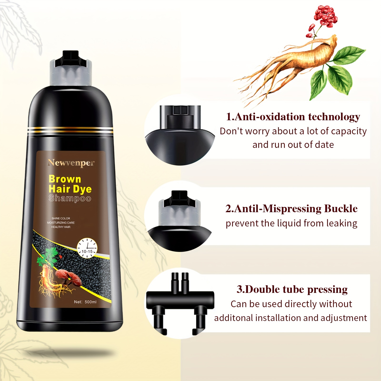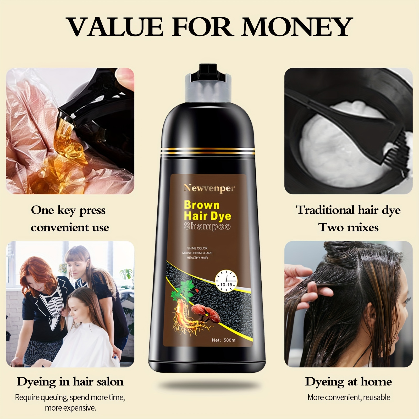Brown Hair Color Shampoo for Gray Hair Instant Hair Dye Shampoo Hair Coloring in Minutes Natural and Long lasting color Hair Dye Shampoo for Men and Women 500ML