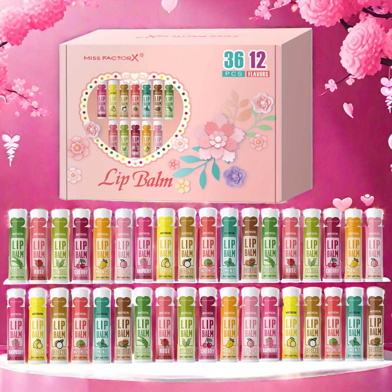 Premium Gift Set 36pcs/Box Lip Balm Kit, Long-Lasting Moisturizing & Brightening Lips – Perfect Gift for Women, Wedding Party Favor, Valentine’s Day Present