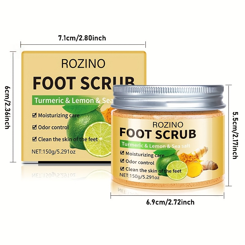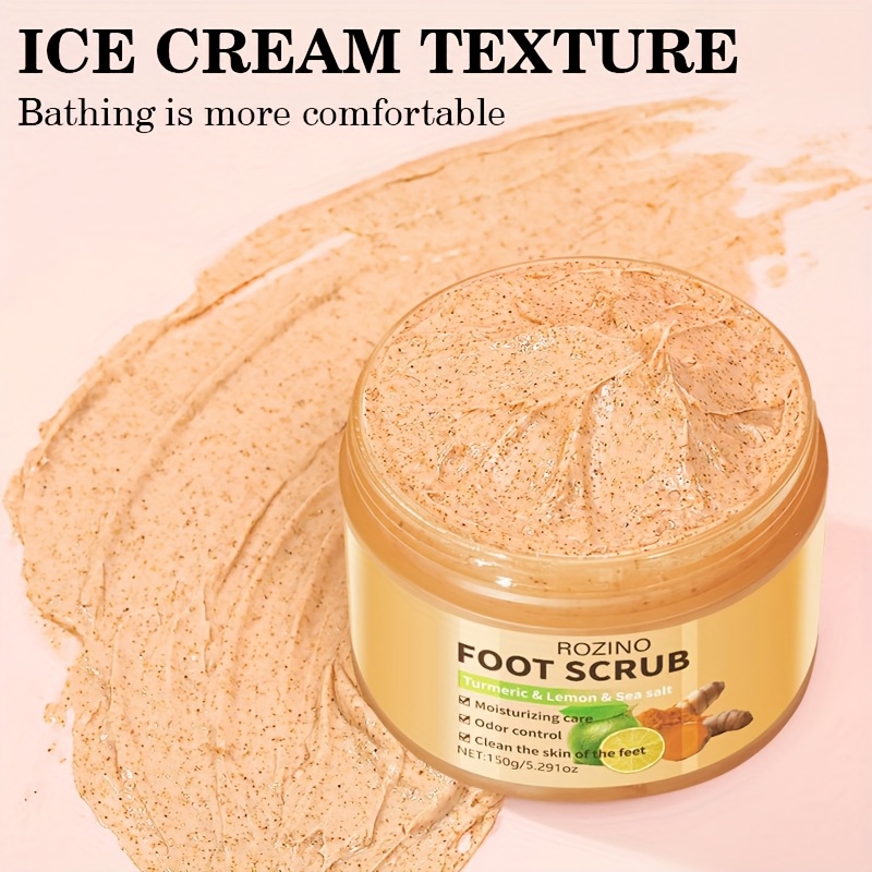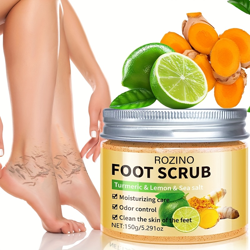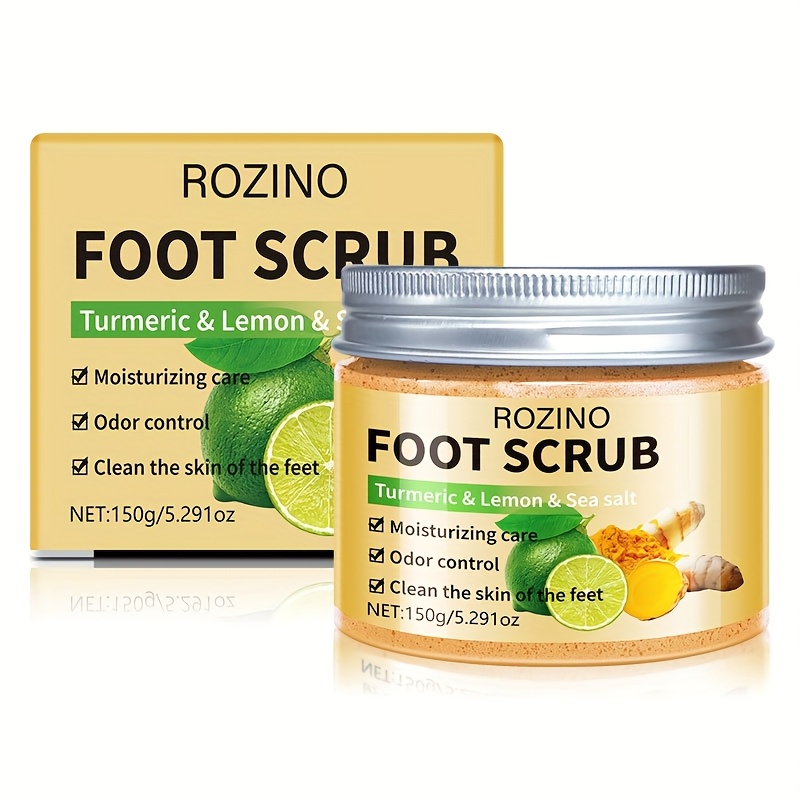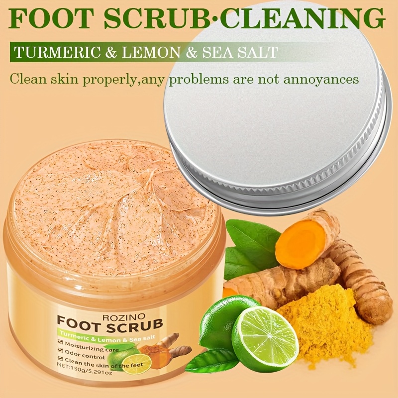 ROZINO Turmeric & Lemon Foot Scrub – 150g Moisturizing Exfoliator for Soft, Smooth Feet, Hypoallergenic, Odor-Controlled, Deep Cleansing for Dry Light Beige, All Light Beige Types, Natural Ingredient Design | Sea Salt Exfoliant, Foot Light Beige Remover